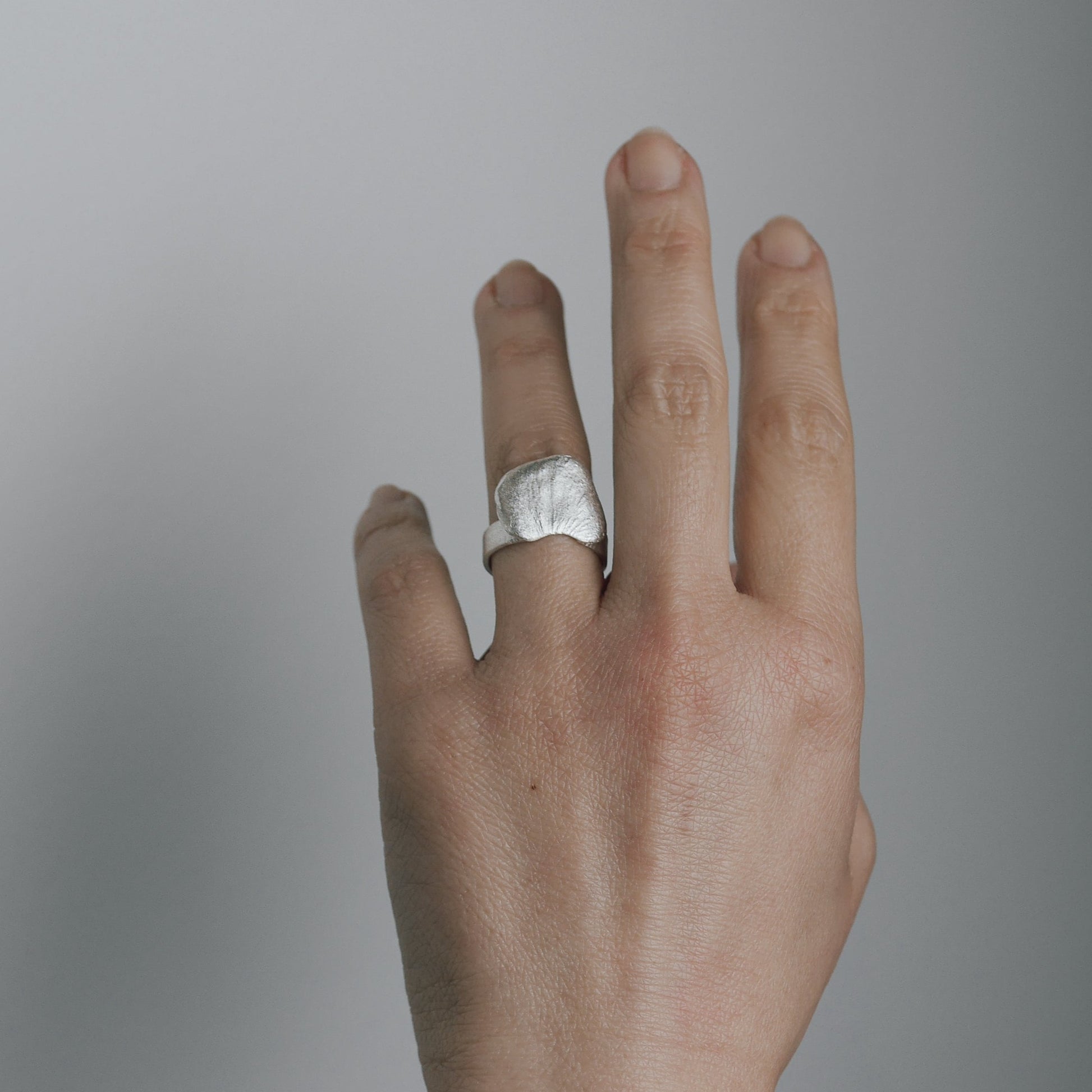 Dancing flower ring-a silken petal ring in fine silver with a matte finish