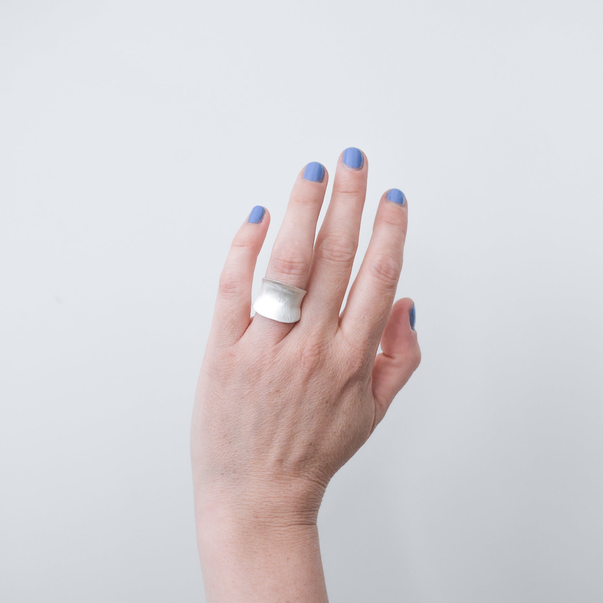 Dancing Flower Ring—a beautifully crafted form in fine silver with a matte finish.