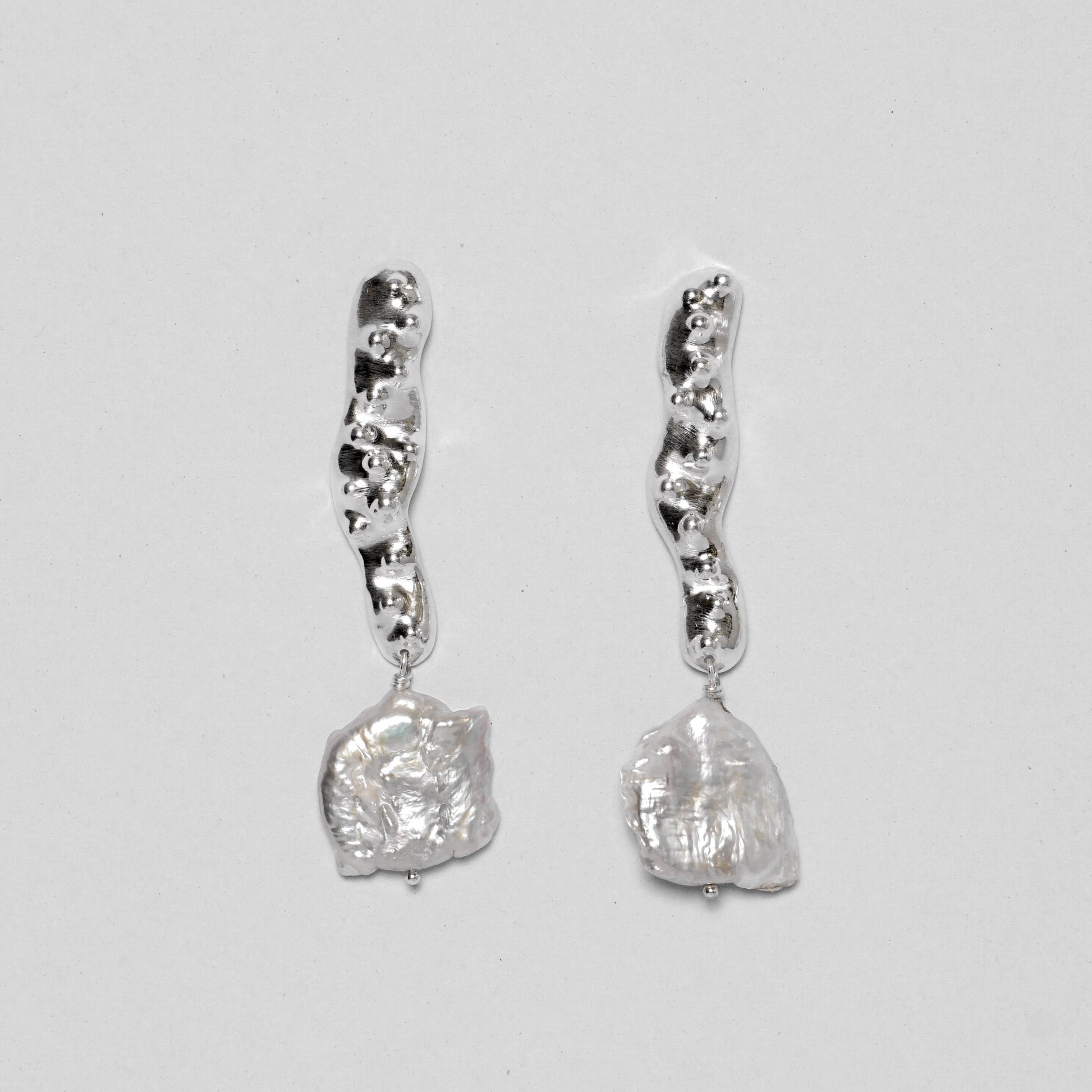 - Material fine silver, baroque freshwater pearls and sterling silver (ear pin)