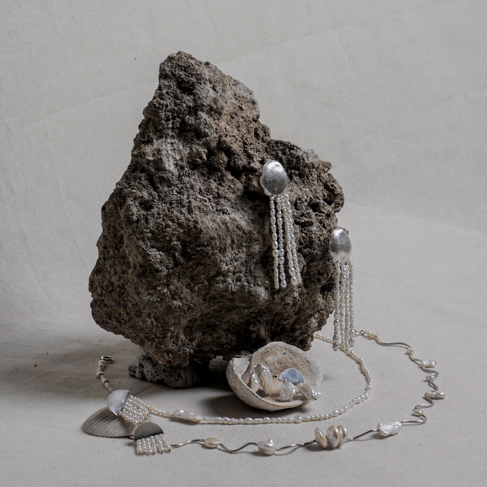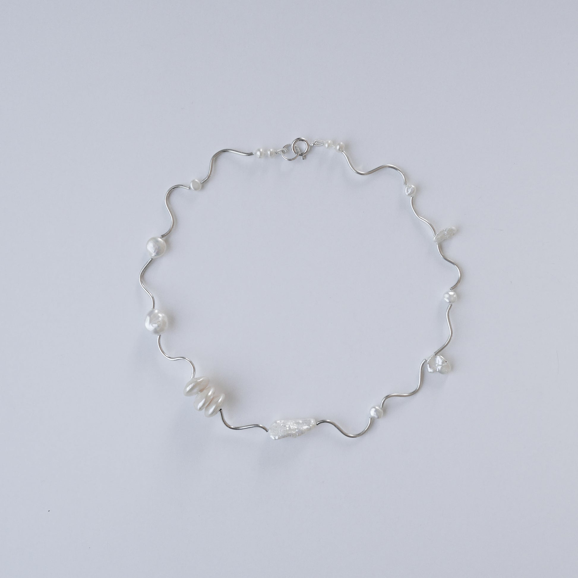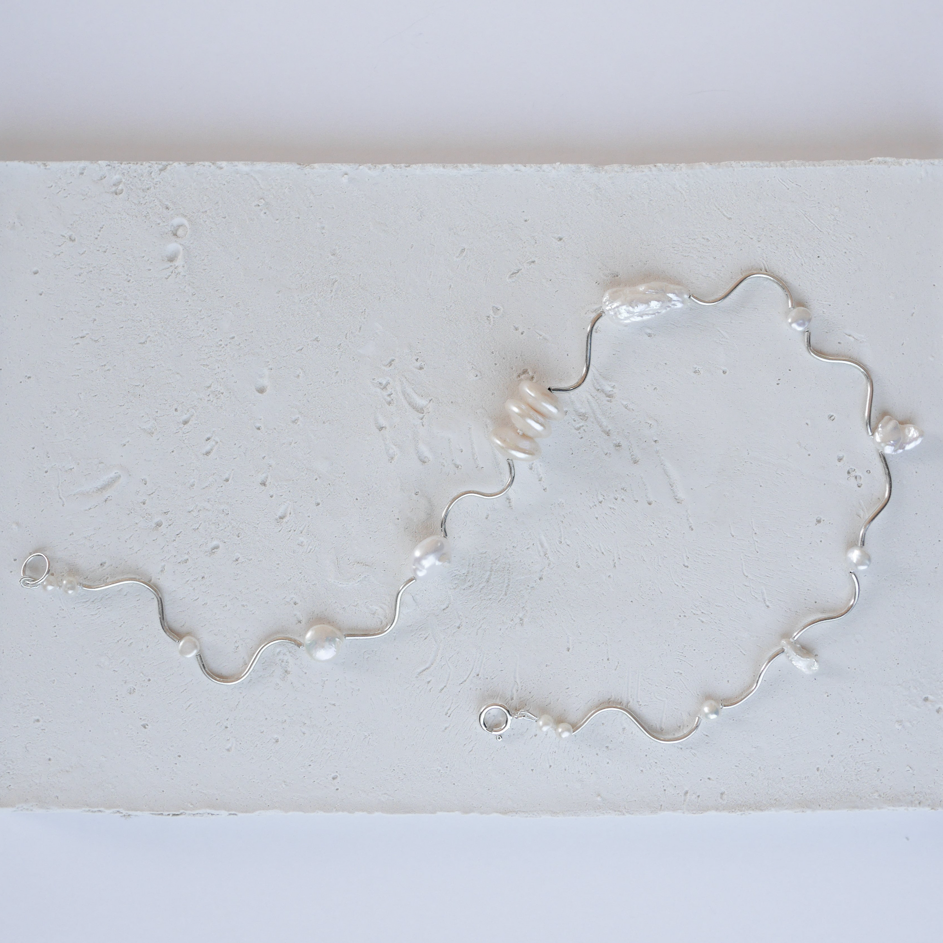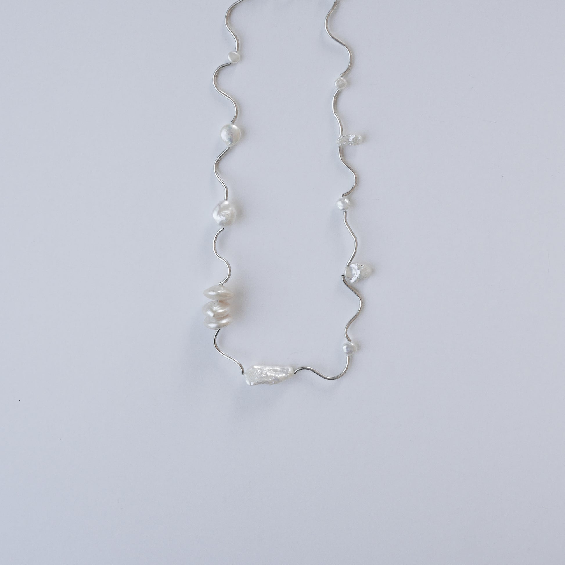 Fluid elegance necklace features uniquely shaped freshwater pearls in a graceful sterling silver design, adding a touch of sophistication to any outfit.