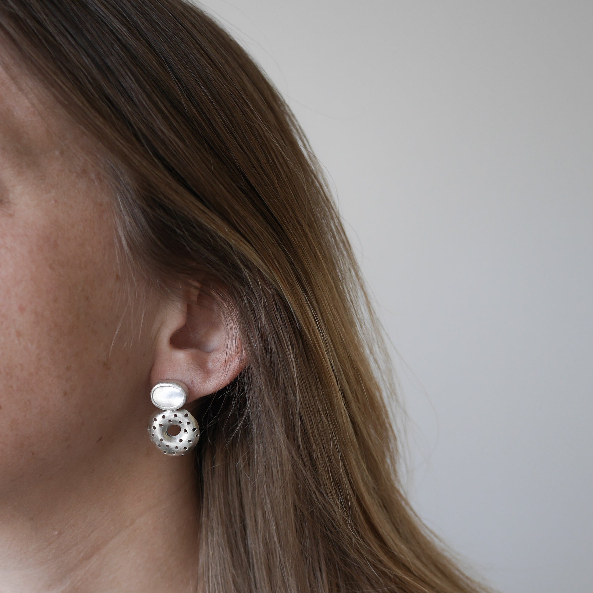 Fine silver earrings with mother of pearl, finished with a matte touch
