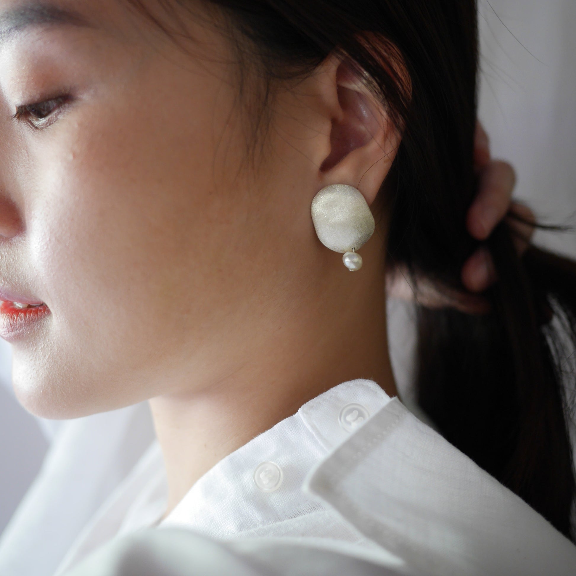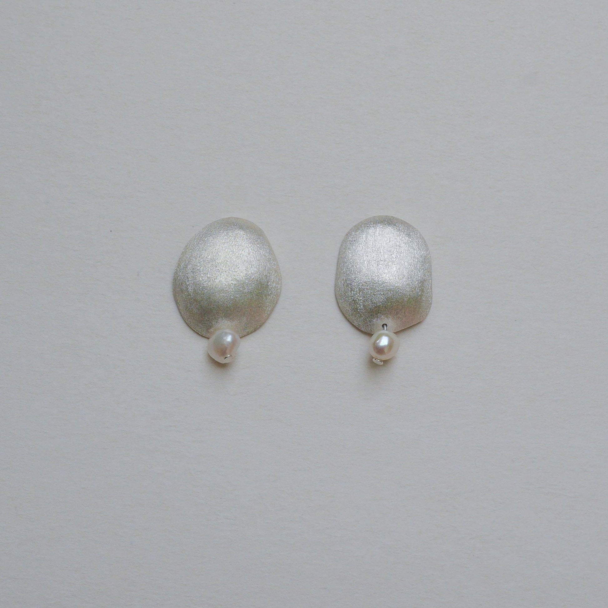 Fine silver earrings with freshwater pearl, finished with a matte touch