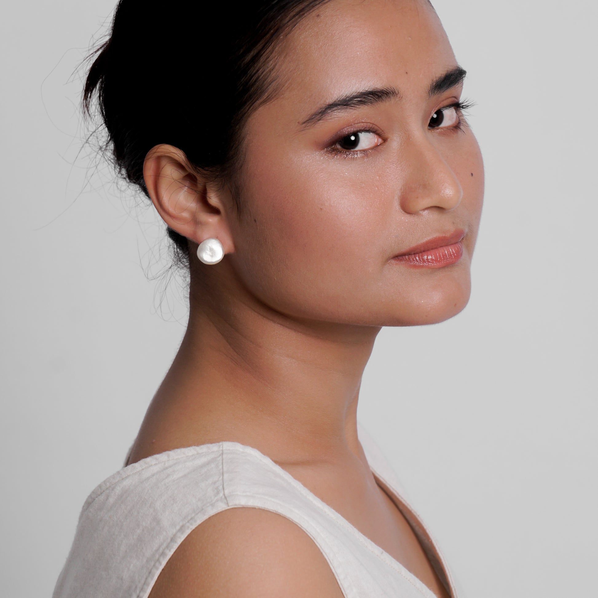 Small Mook earrings, a tribute to natural pearl's form and texture, crafted in fine silver with a matte finish