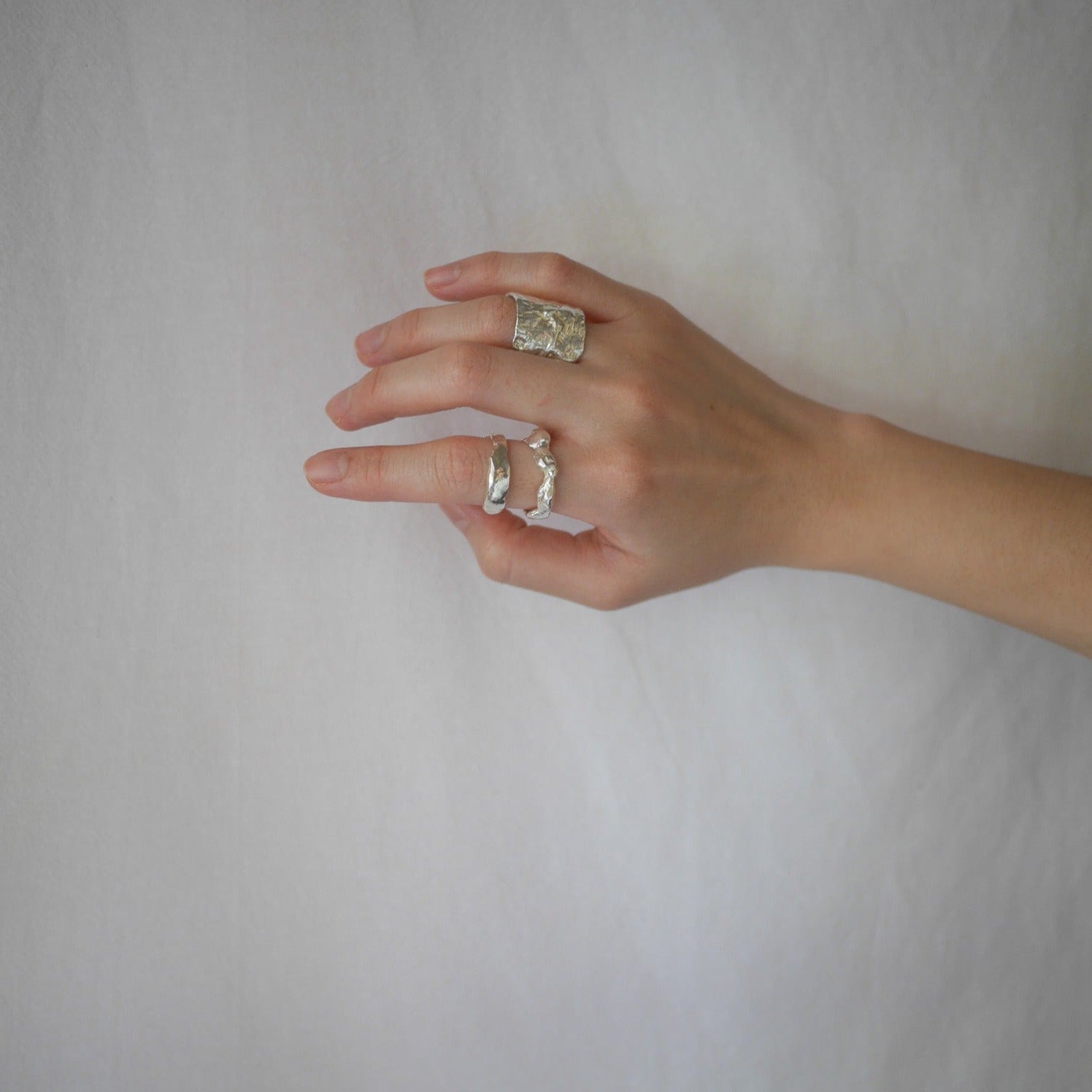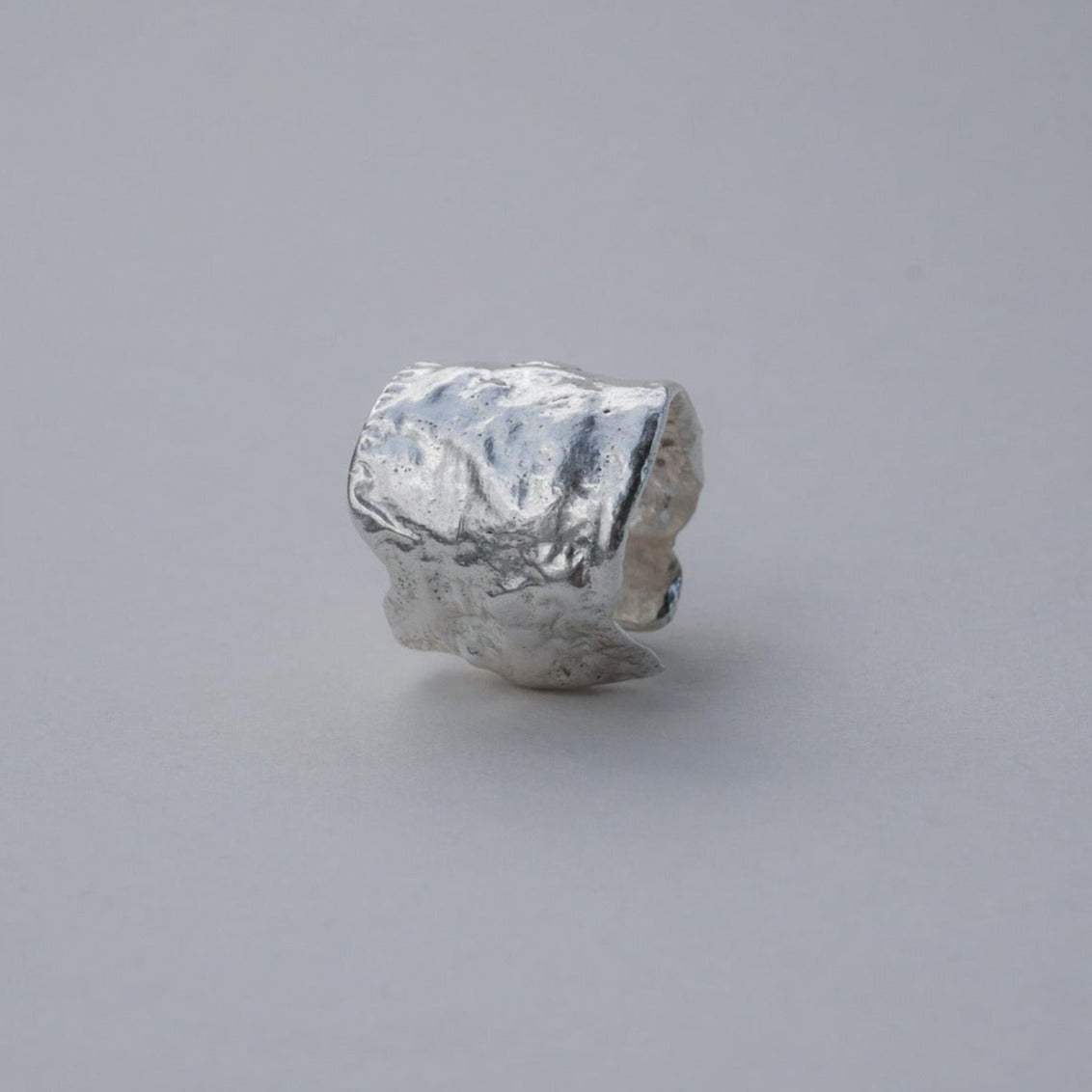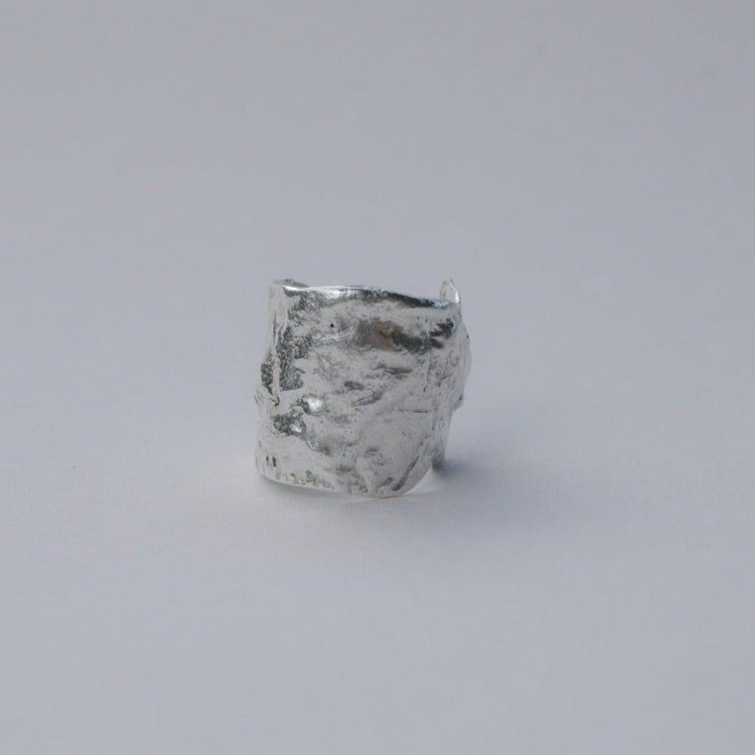 Wide band ring with a polished shine, crafted from recycled sterling silver scraps