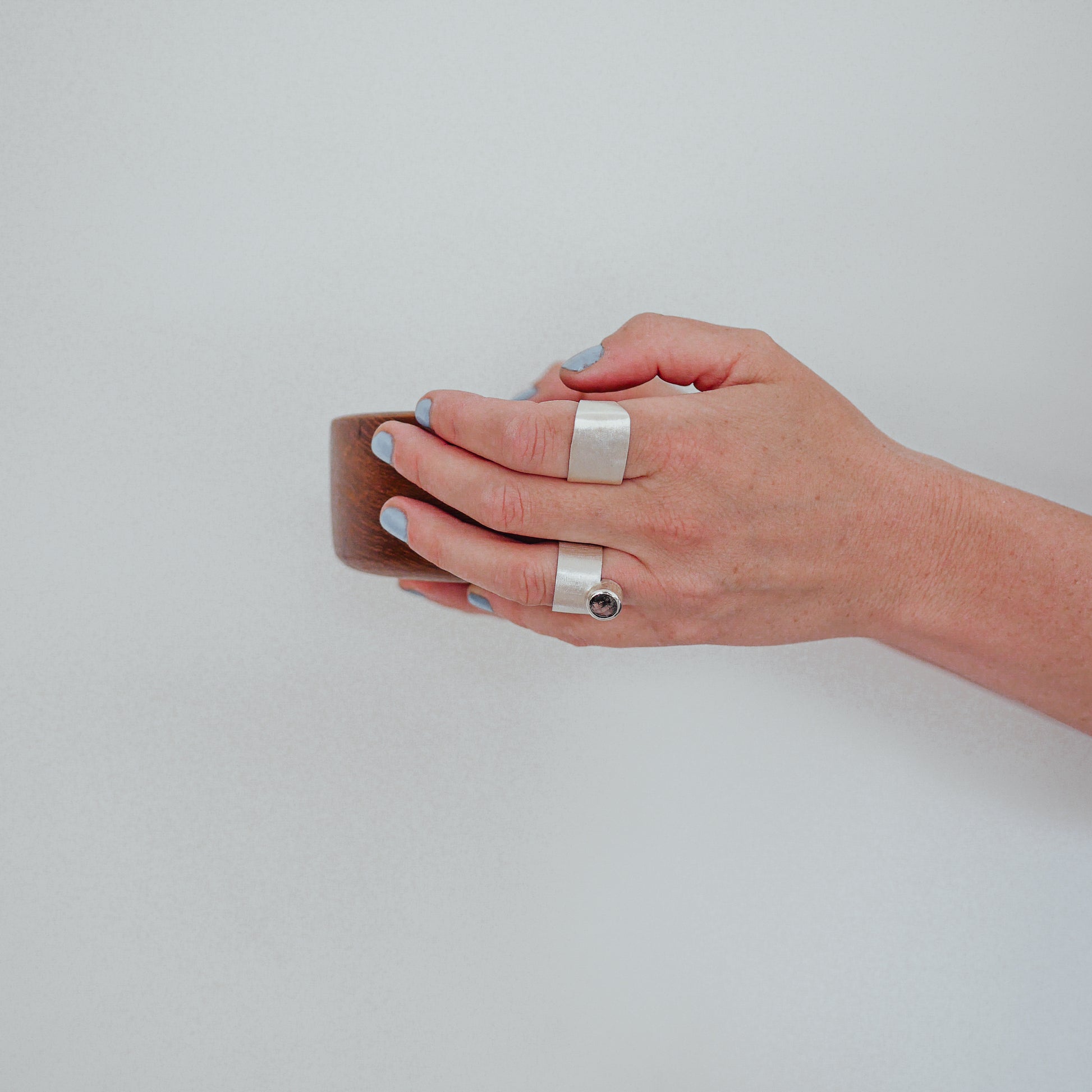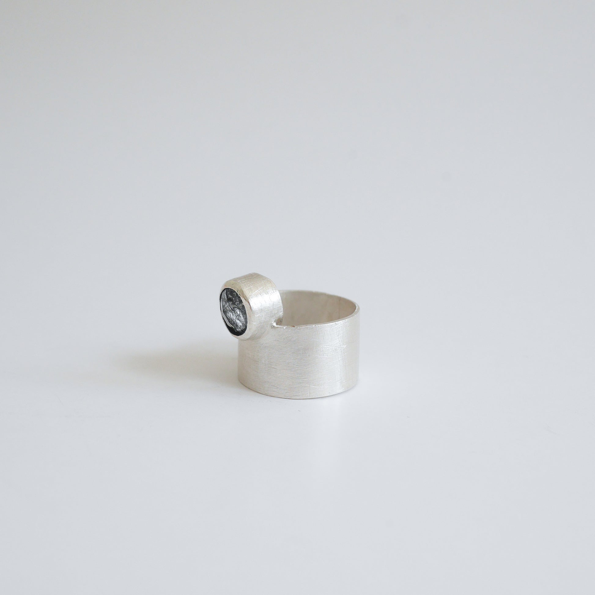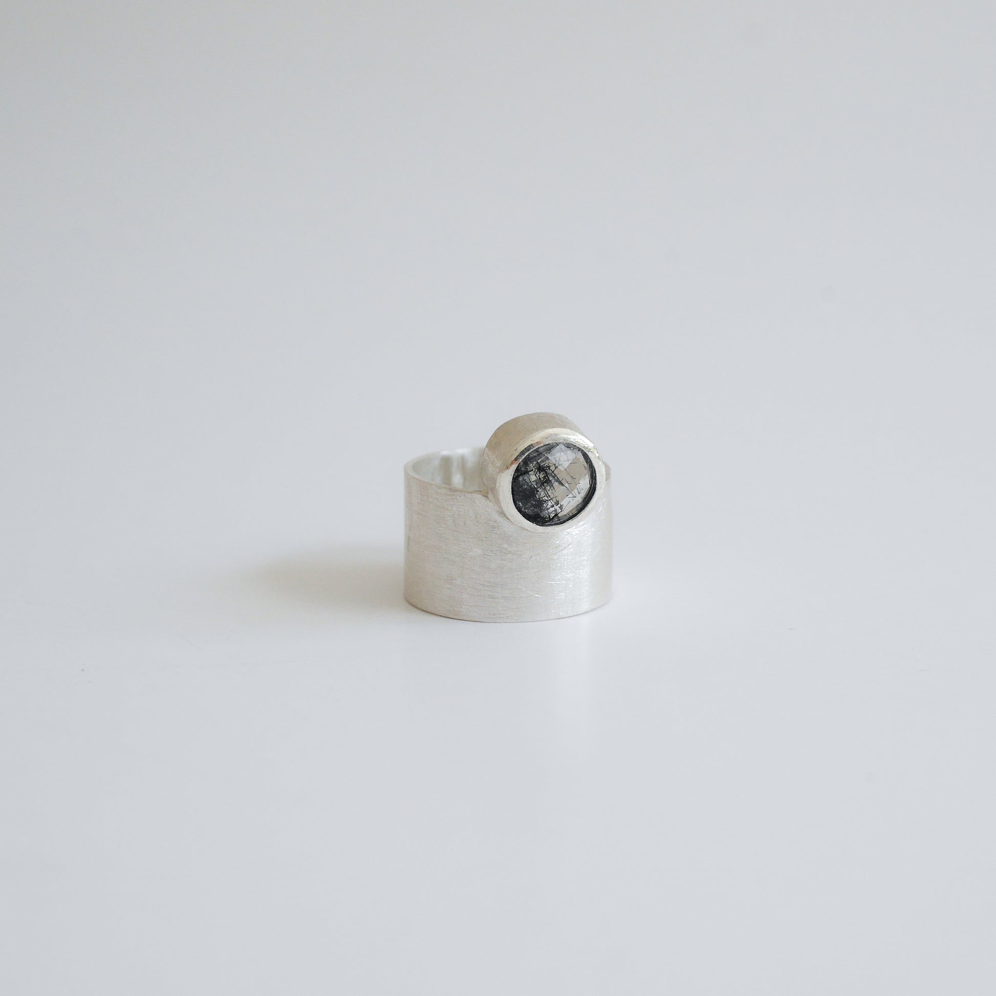 Salt & pepper quartz ring, crafted in matte finish fine silver