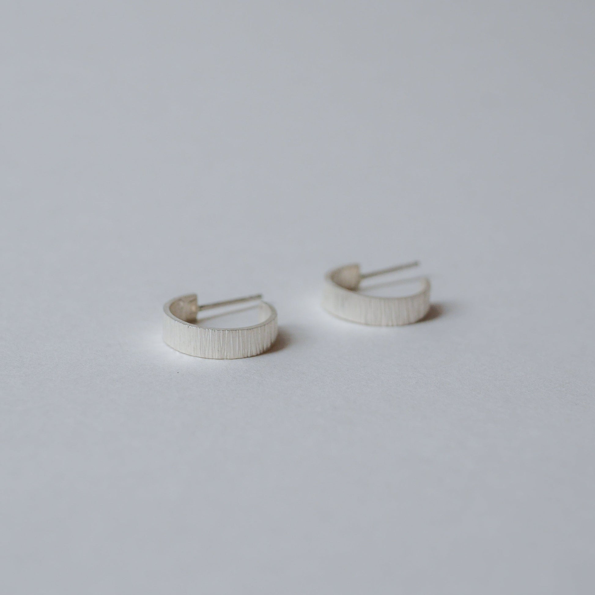 Small Seashell earrings with hammered texture, crafted in fine silver