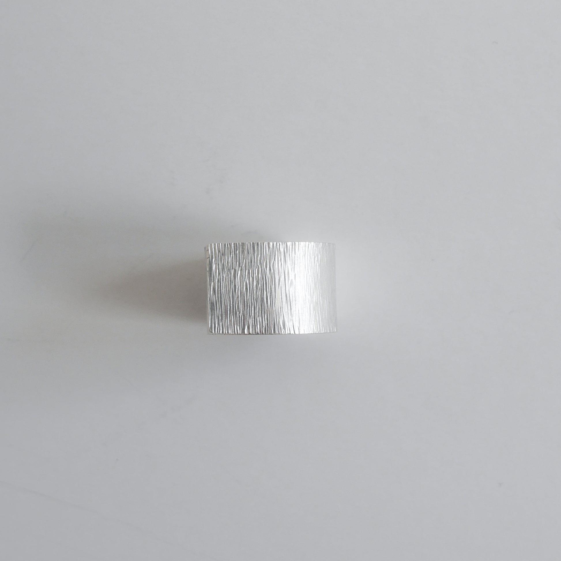 Medium Seashell band ring with hammered texture, crafted in fine silver