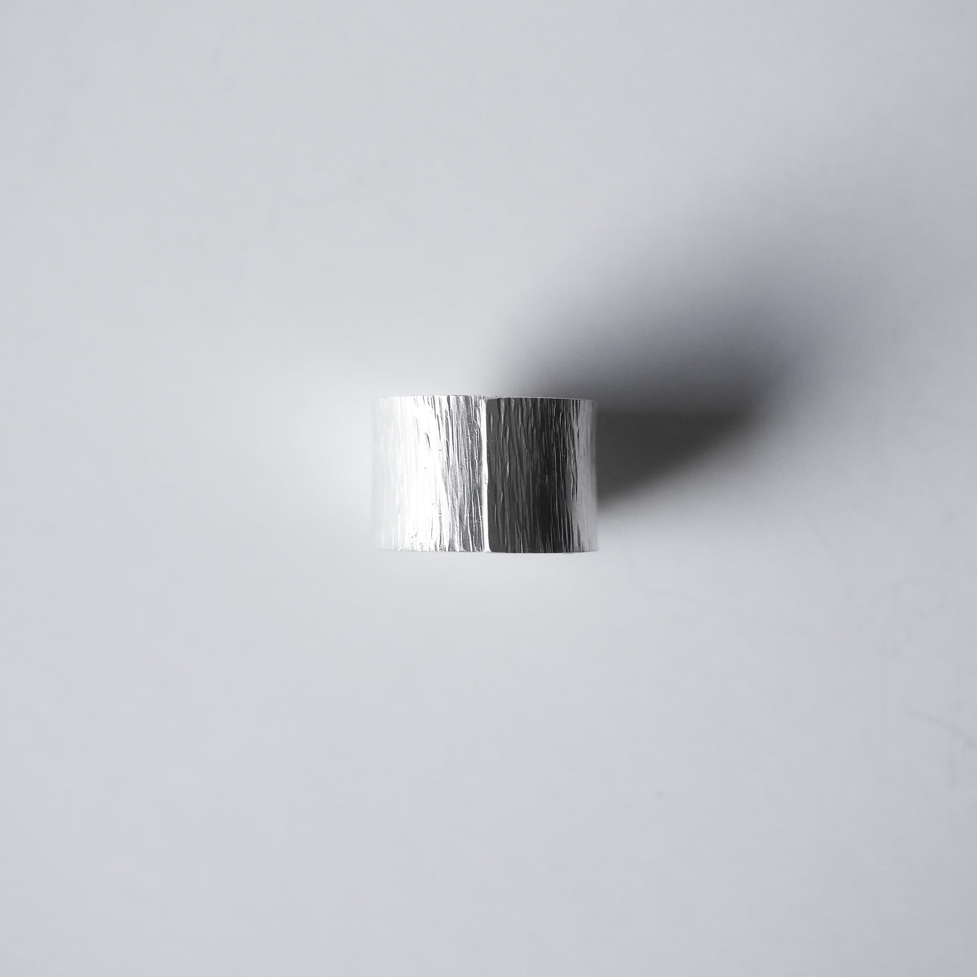 Medium Seashell band ring with hammered texture, crafted in fine silver