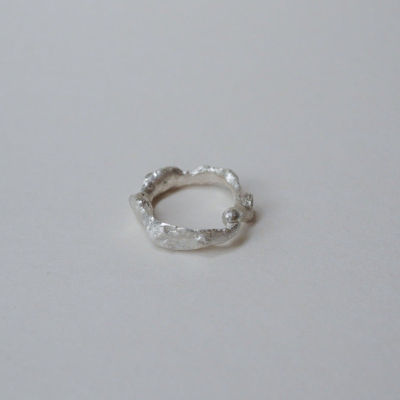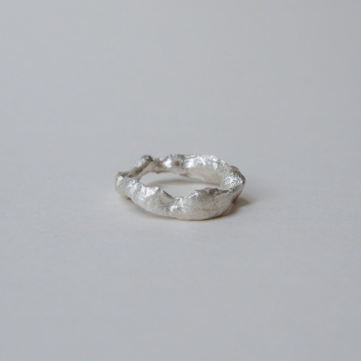 Organically shaped ring with matte finish, crafted from recycled fine silver scraps