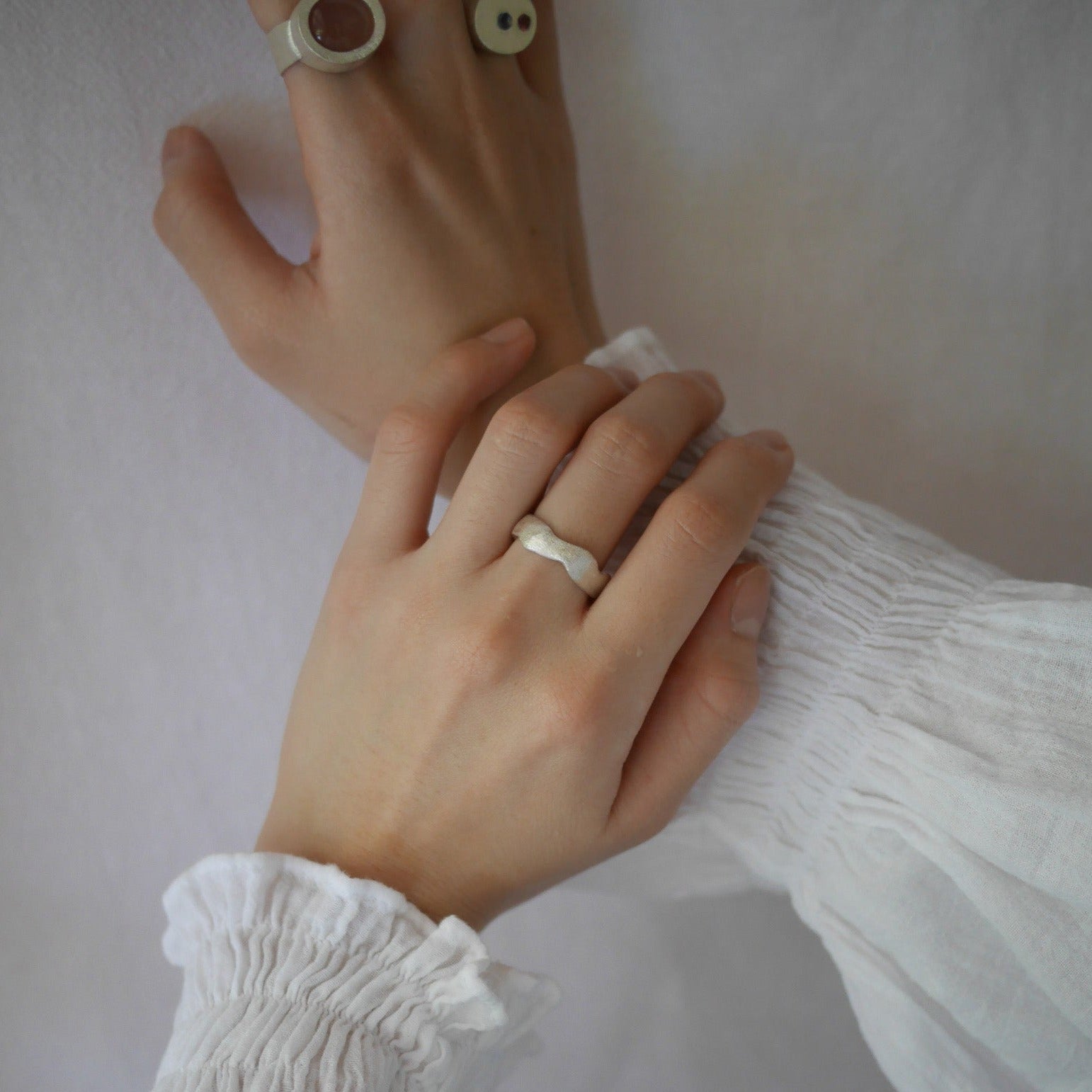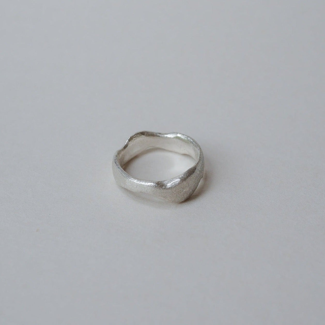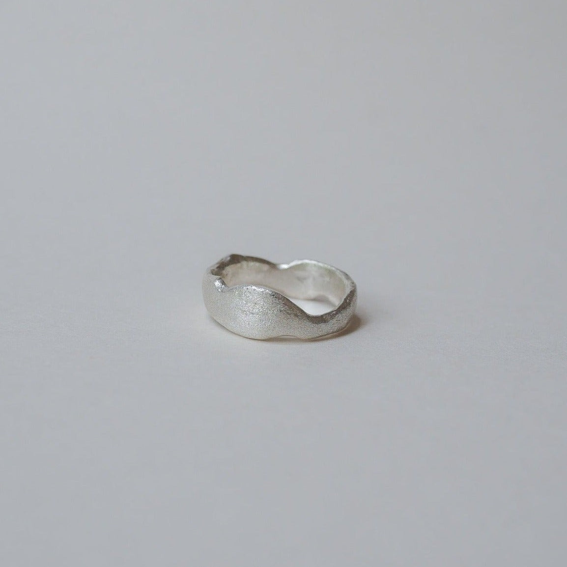 Organically shaped ring with matte finish, crafted from recycled fine silver scraps