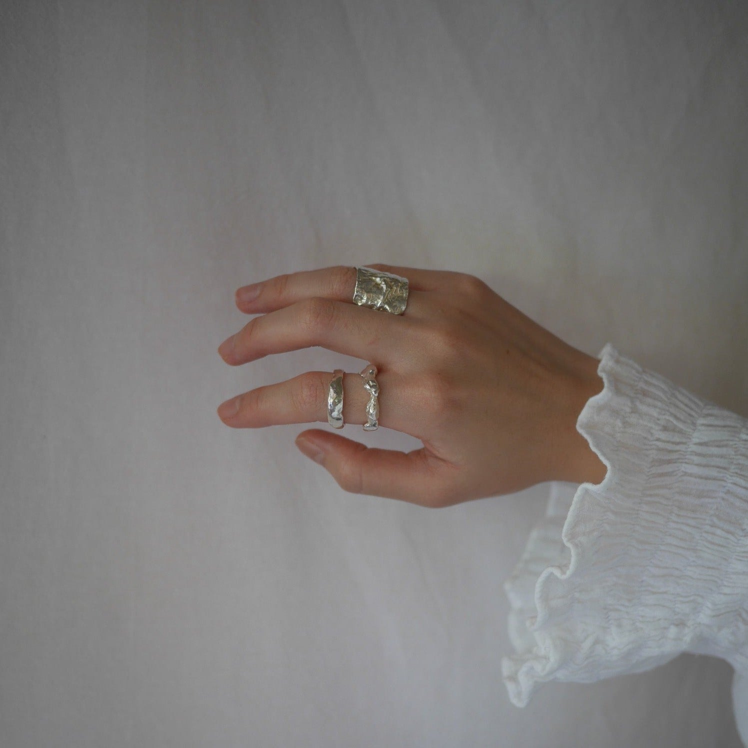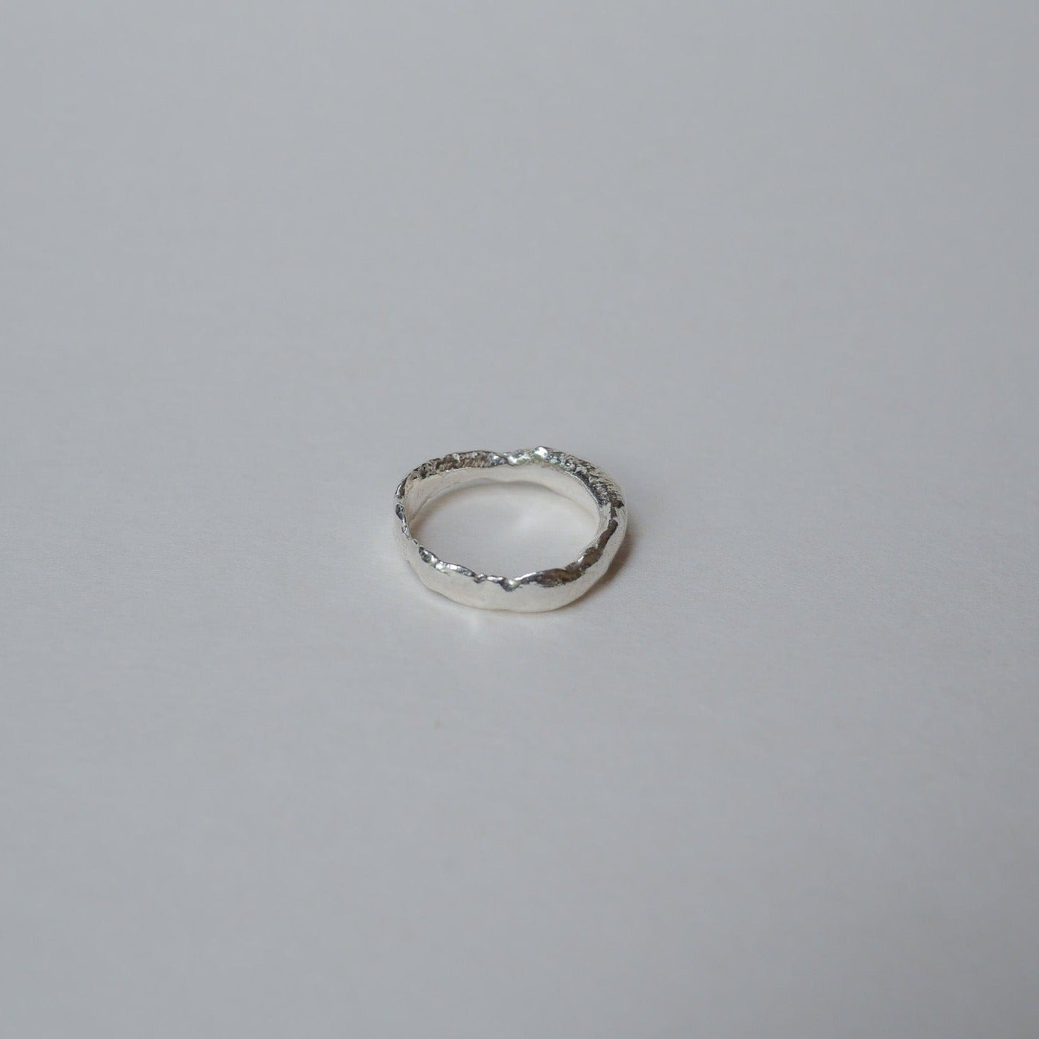 Organically shaped ring with a polished shine, crafted from recycled sterling silver scraps