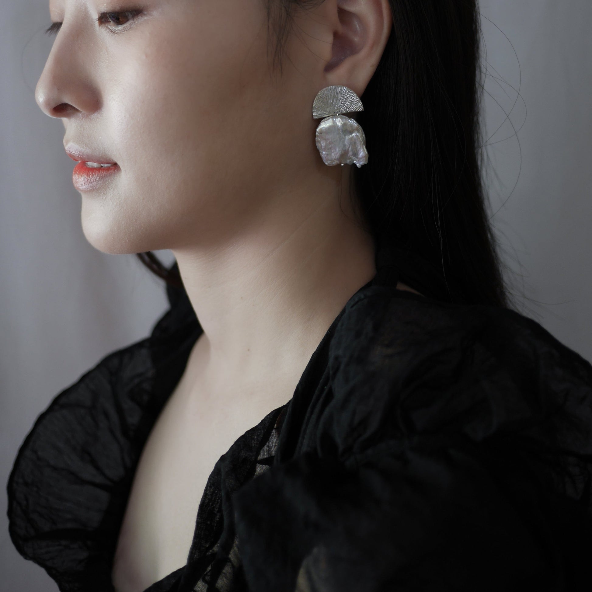 - Material fine silver, baroque freshwater pearls and sterling silver (ear pin)